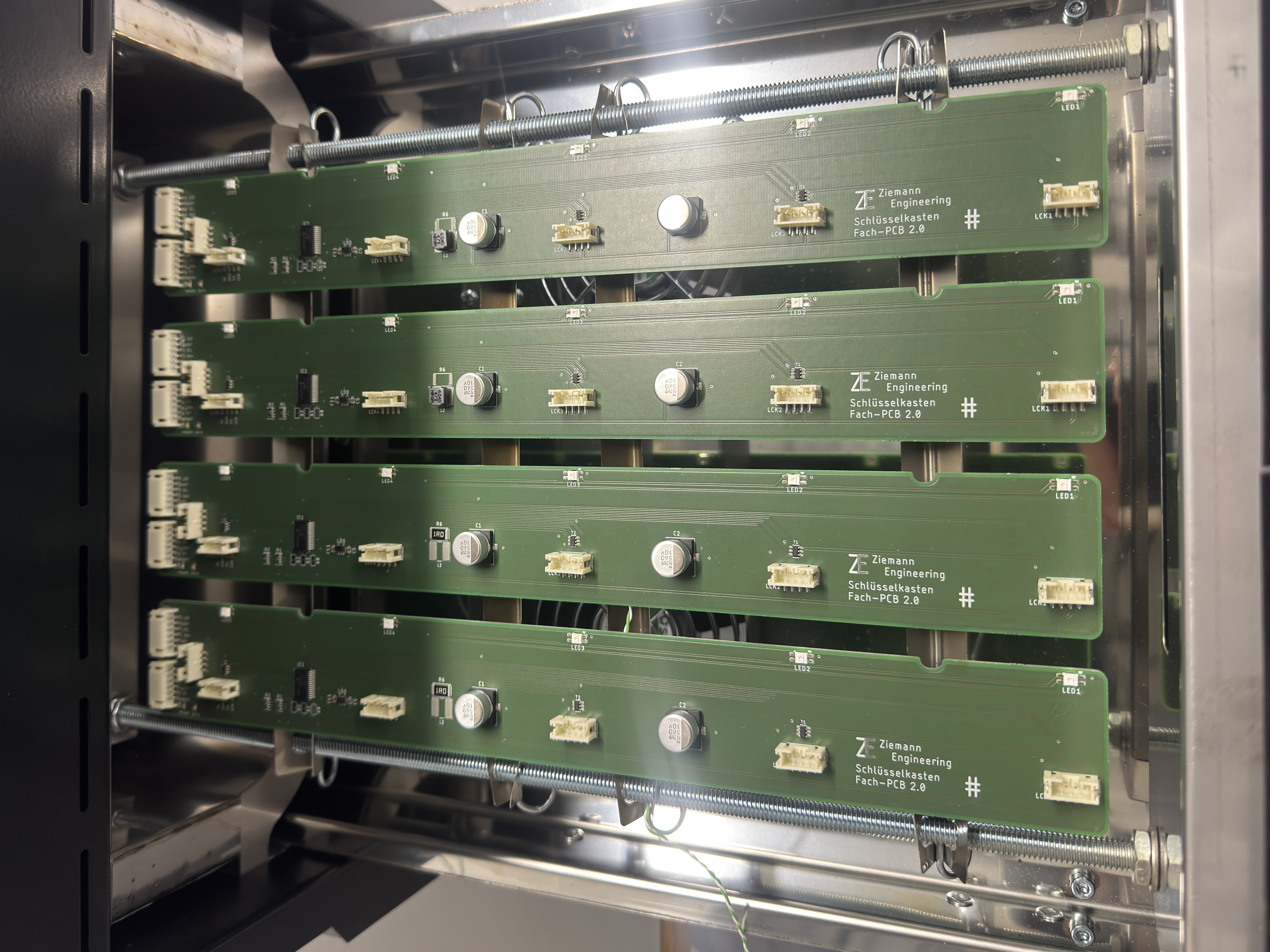 This project involved several custom PCBs, connecting the many compartments and integrating a rugged touchpad. The mechanical structure is mostly 3D-printed from robust, translucent PETG, with steel hinges and locks. Last but not least, an API needed to be defined and implemented.